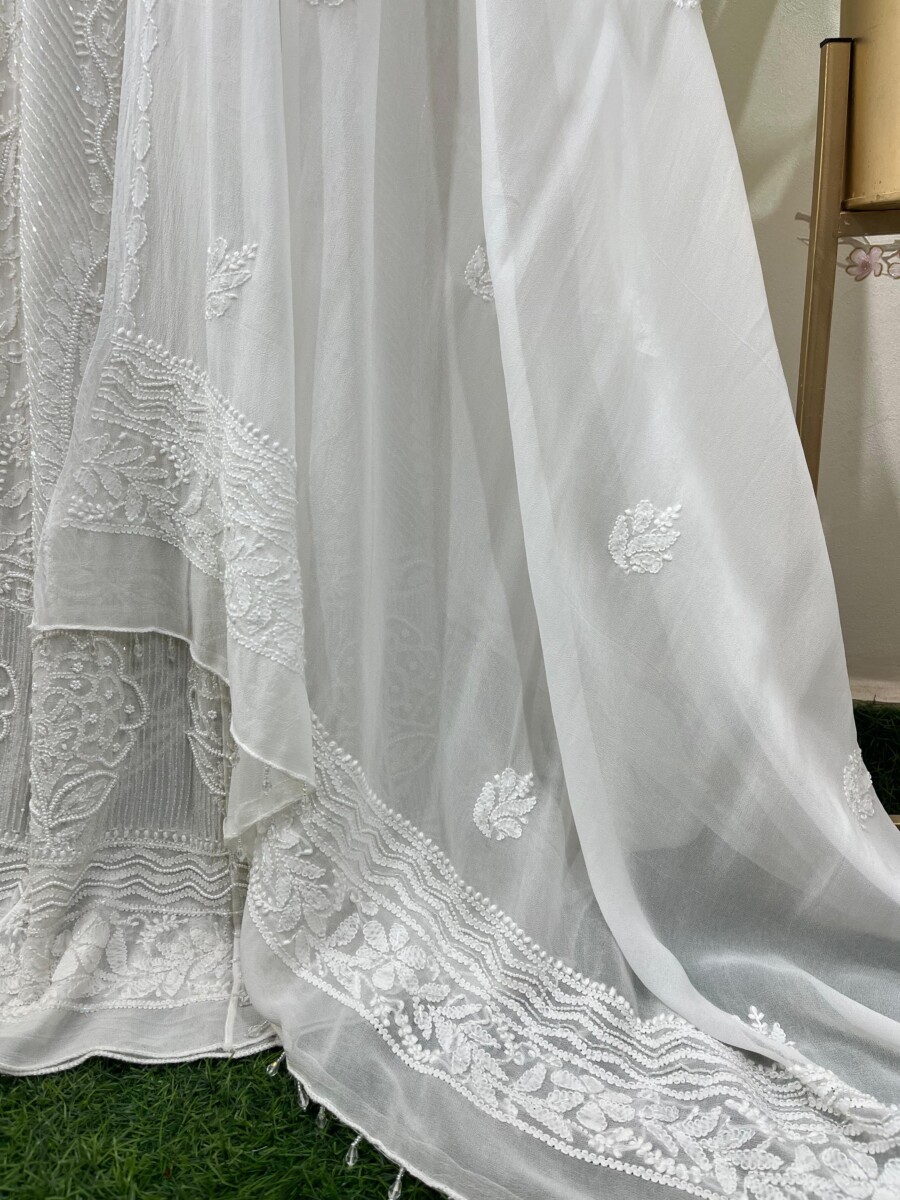 Embroidery: Fine Chikankari with subtle add-on detailing