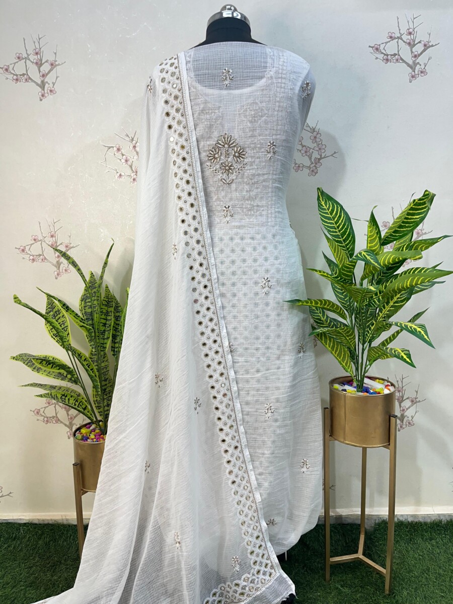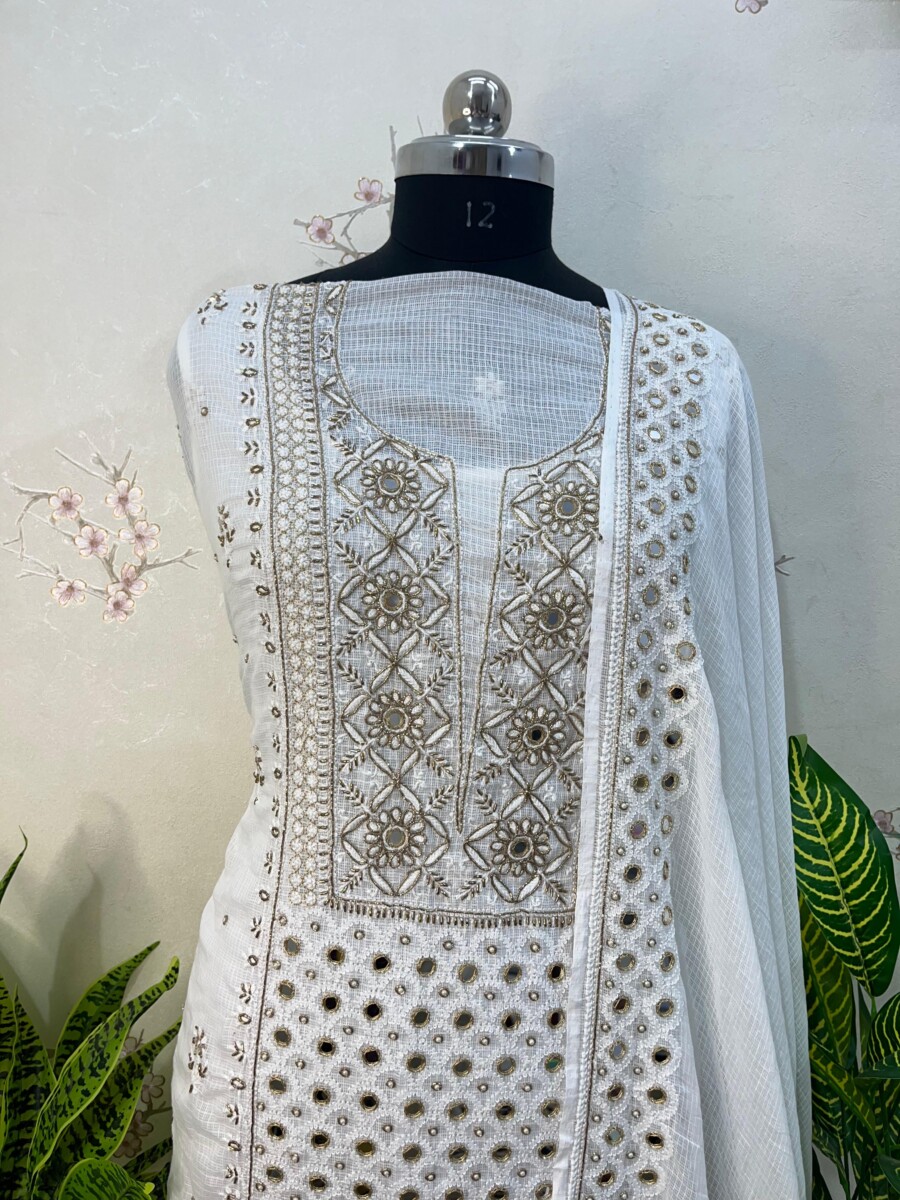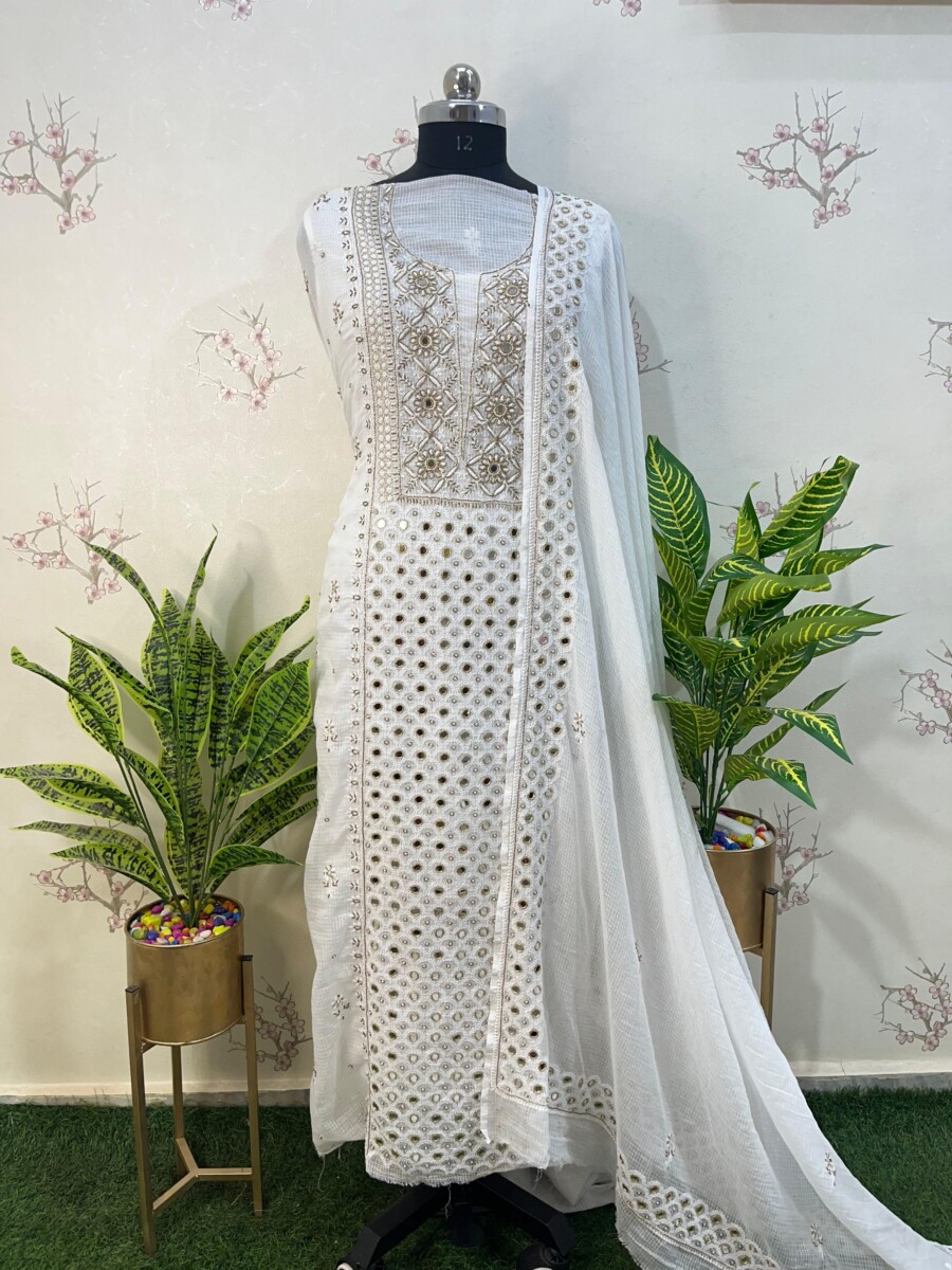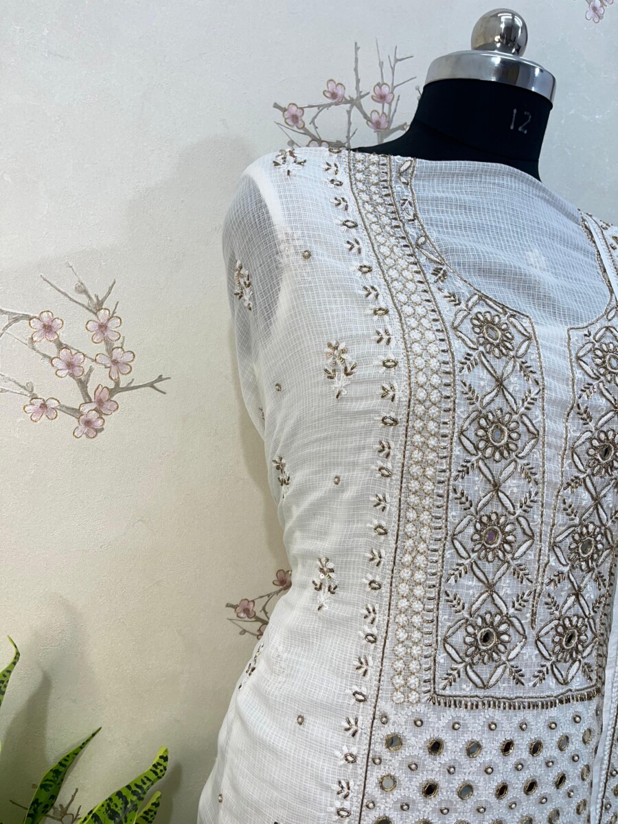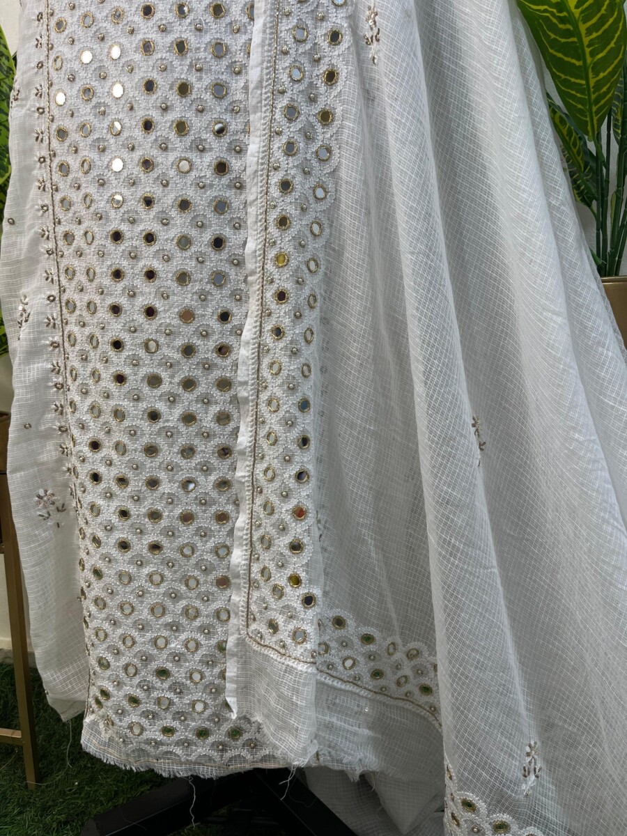 Embroidery: Fine Chikankari mirror with subtle add-on detailing