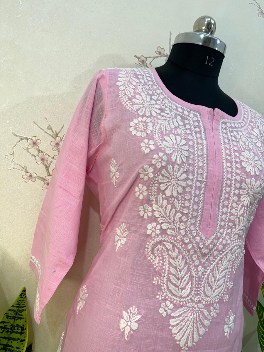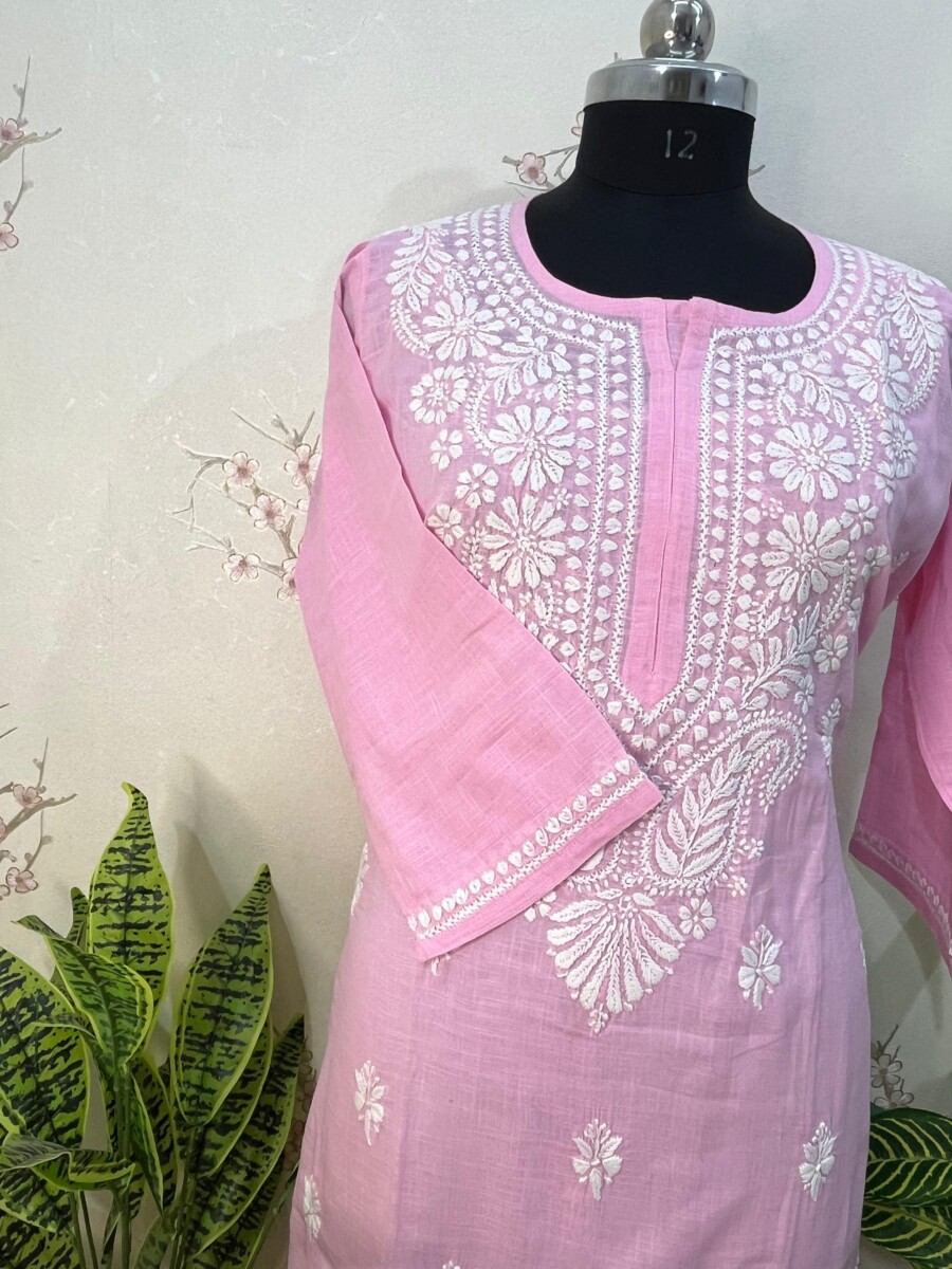 cotton Linen stitched Kurti₹1,500.00 Click here to check out the real product view on Instagram! Want a closer look? Connect on WhatsApp for a live video call! cotton Linen stitched Kurti quantity Add to cart Category: Kurti Description Reviews (0) Description Fabric (Top): Cotton Linen Length of Kurta: 44 inches Chest: 46 Hip: 50 Color: pink Embroidery: Fine Chikankari detailing Thread: polyester Thread color: White Touch & Feel: Soft, airy and comfortable Reviews There are no reviews yet. Be the first to review “cotton Linen stitched Kurti” Cancel replyYour email address will not be published. Required fields are marked *Your rating * Rate… Perfect Good Average Not that bad Very poor Your review *Name * Email * Save my name, email, and website in this browser for the next time I comment. Related products Kurticotton stitched panel buti chikankari Kurti ₹3,550.00 Add to cart KurtiStitched Kurti ₹1,500.00 Add to cart SaleKurtiPure Organza semi stitched Kurti ₹7,500.00 Original price was: ₹7,500.00.₹6,500.00Current price is: ₹6,500.00. Add to cart