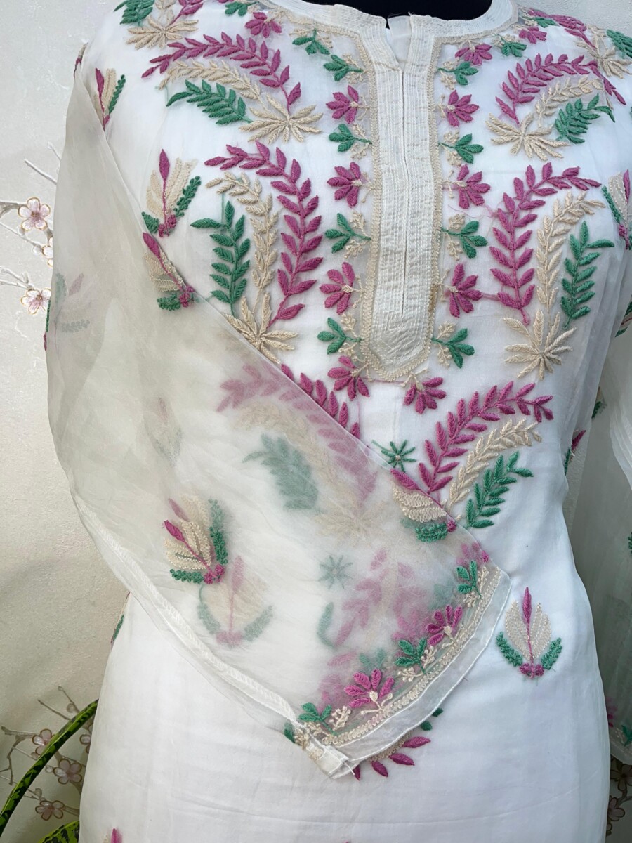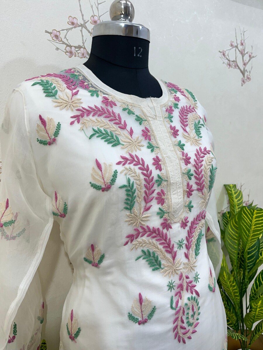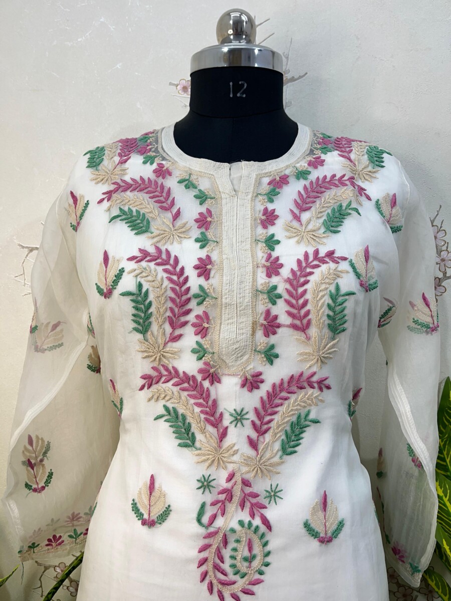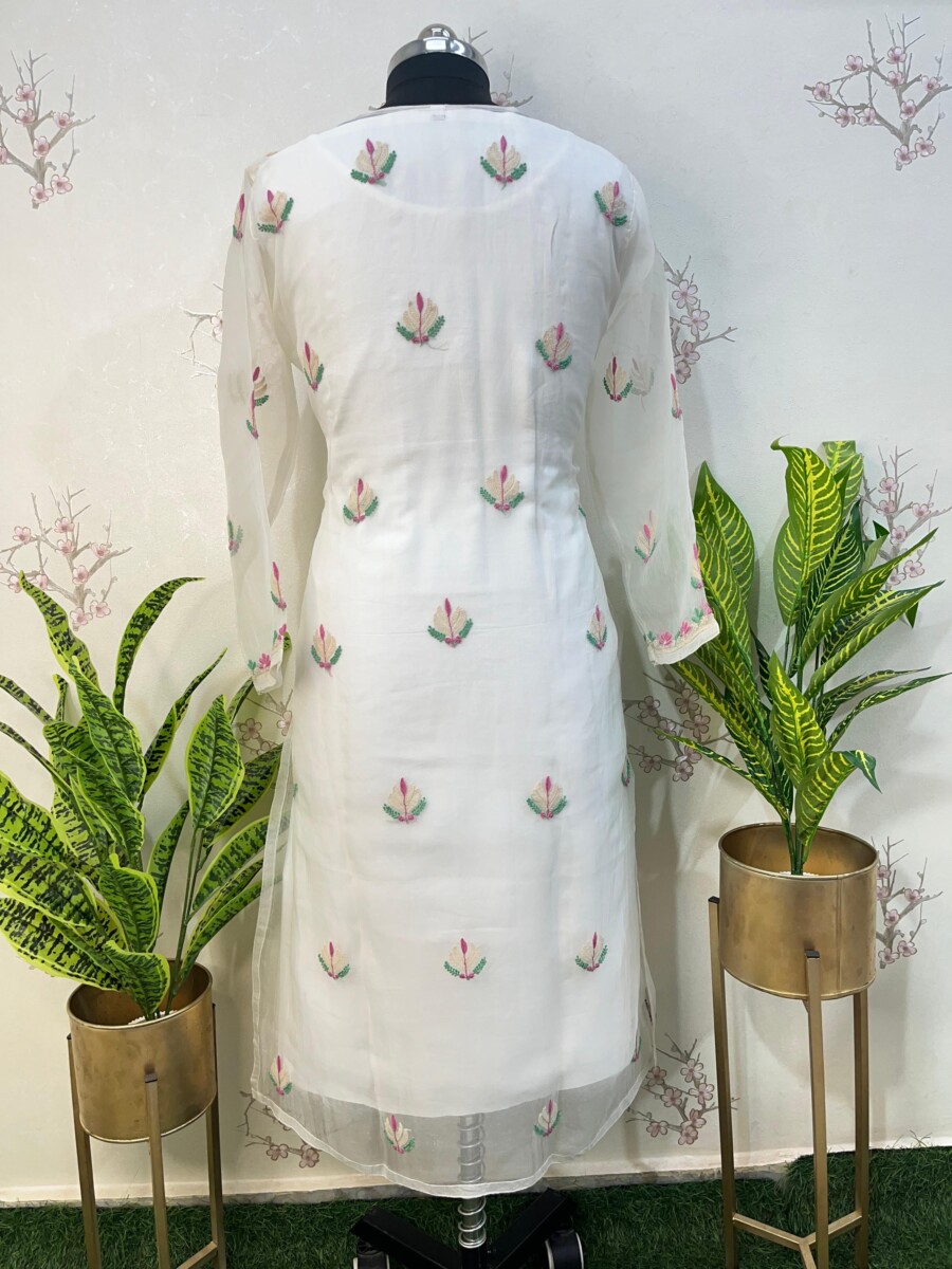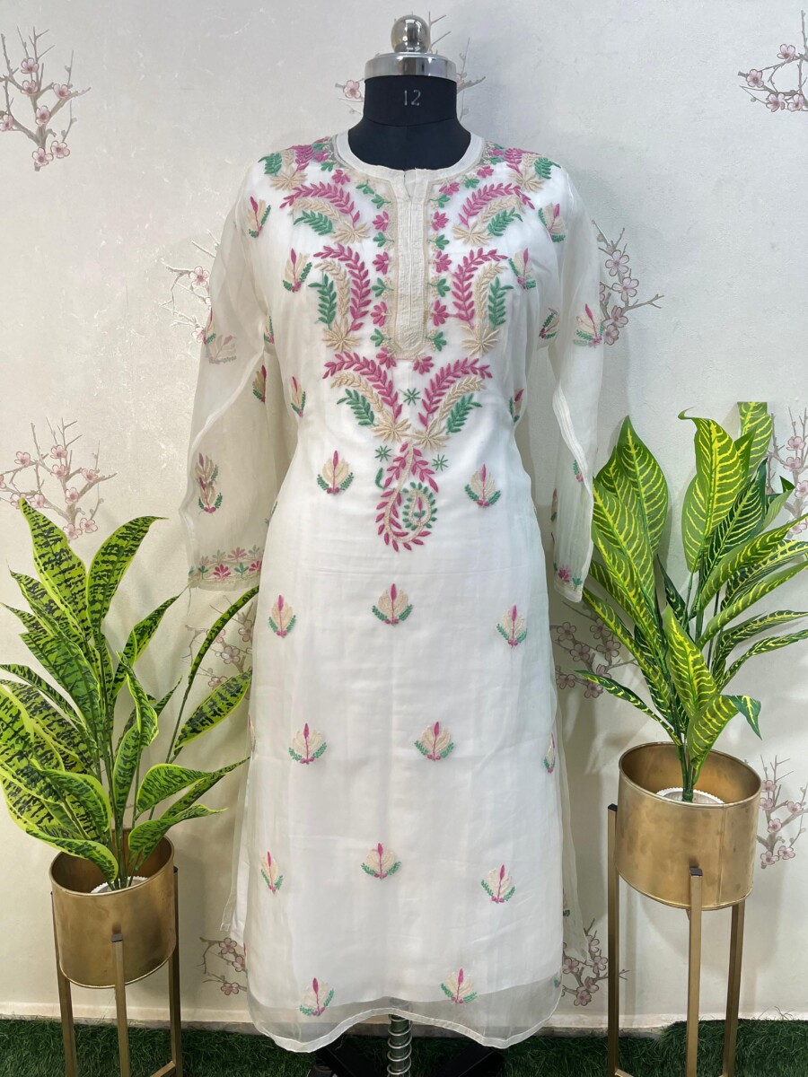 pure Organza stitched Kurti₹3,150.00 Click here to check out the real product view on Instagram! Want a closer look? Connect on WhatsApp for a live video call! pure Organza stitched Kurti quantity Add to cart Category: Kurti Description Reviews (0) Description Fabric (Kurti): pure Organza Length of Kurti: 47 inch Chest: 44 Hip: 44 Colour: White Embroidery: Fine Chikankari work detailing Thread: cotton Thread Color: light wine, green, beige Touch & Feel: Soft, airy and comfortable Reviews There are no reviews yet. Be the first to review “pure Organza stitched Kurti” Cancel replyYour email address will not be published. Required fields are marked *Your rating * Rate… Perfect Good Average Not that bad Very poor Your review *Name * Email * Save my name, email, and website in this browser for the next time I comment. Related products KurtiCotton linen stitch Kurti ₹3,500.00 Add to cart Kurtipure Organza stitched Kurti ₹3,150.00 Add to cart KurtiPure silk panel buti Unstitched Kurti ₹6,500.00 Add to cart