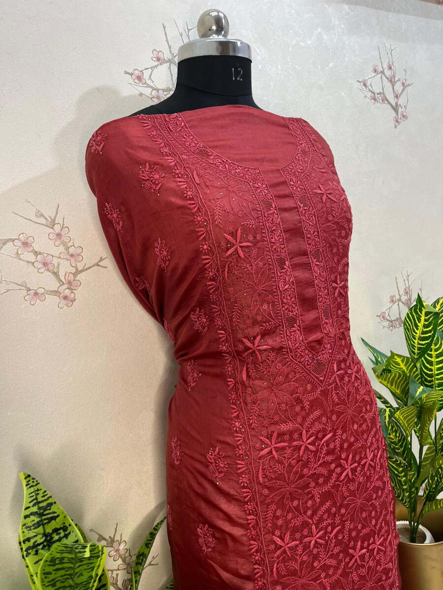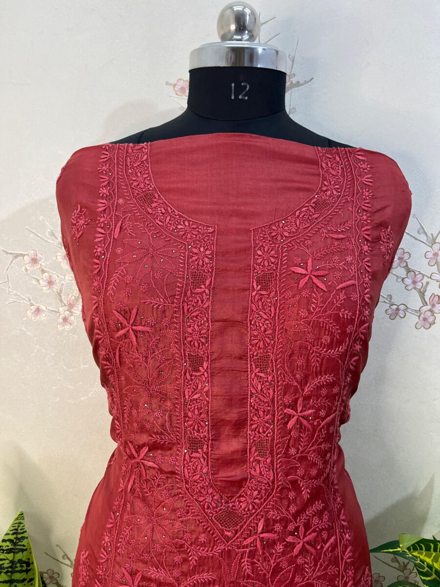 Embroidery: Fine Chikankari with Mukaish work detailing