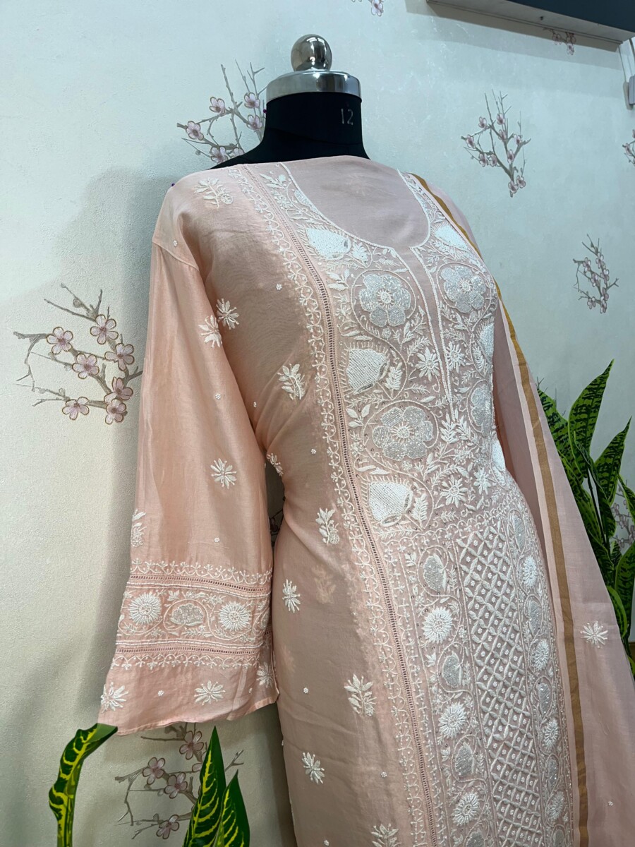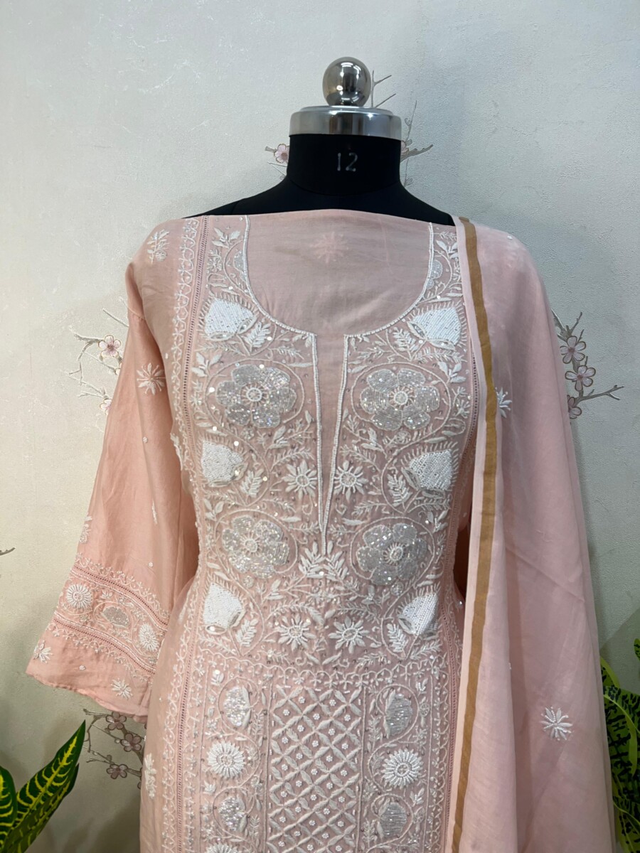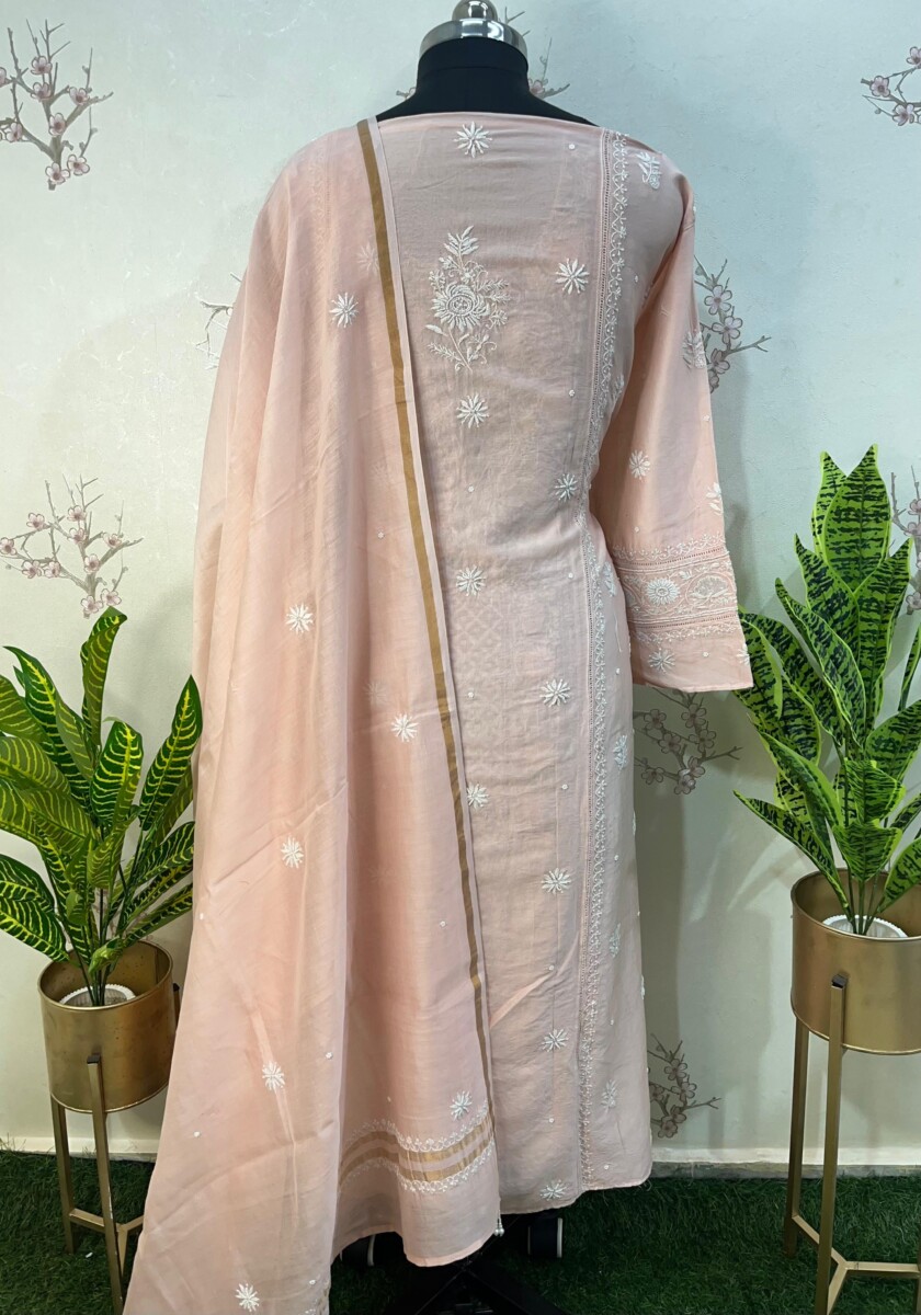 Embroidery: Fine Chikankari with subtle add-on detailing