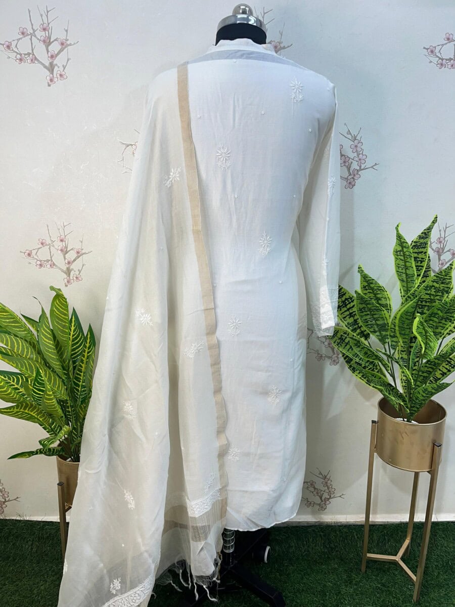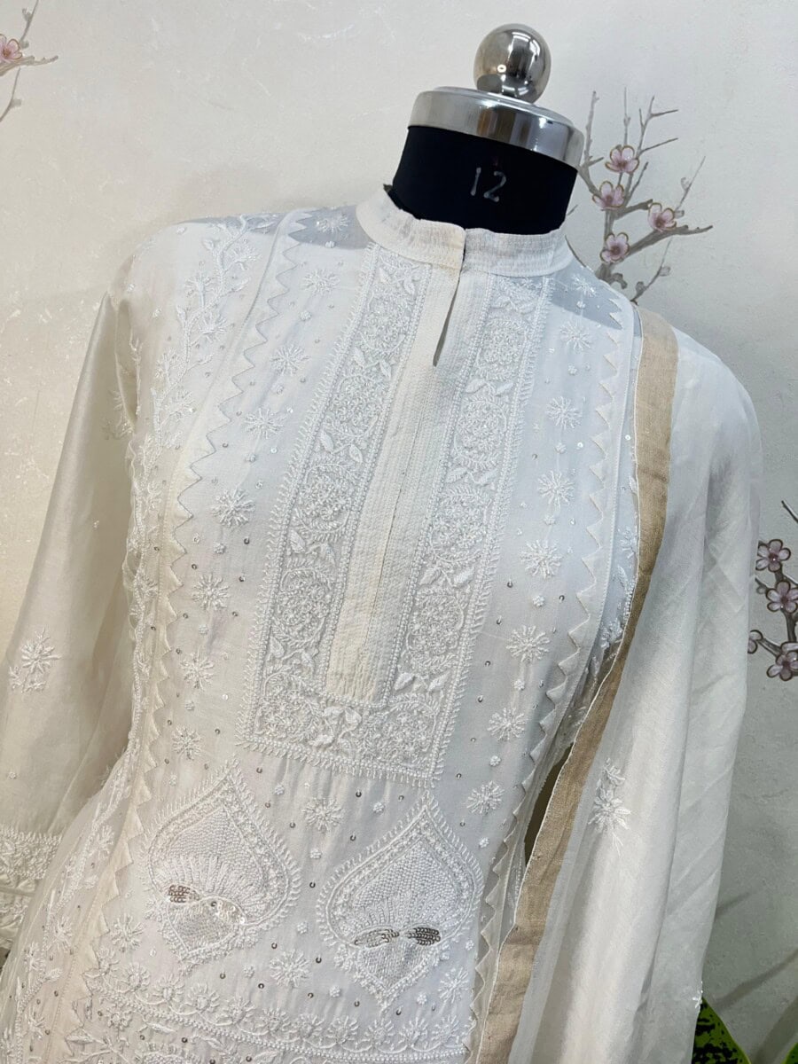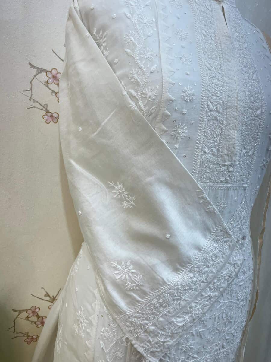 Embroidery: Fine Chikankari with subtle add-on detailing