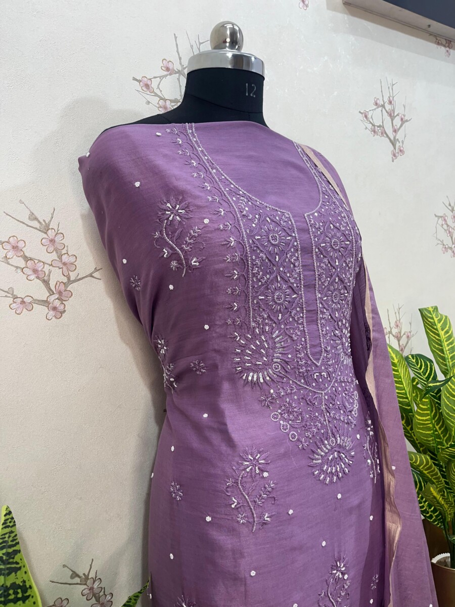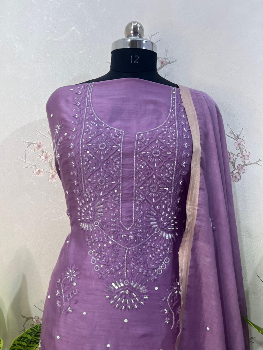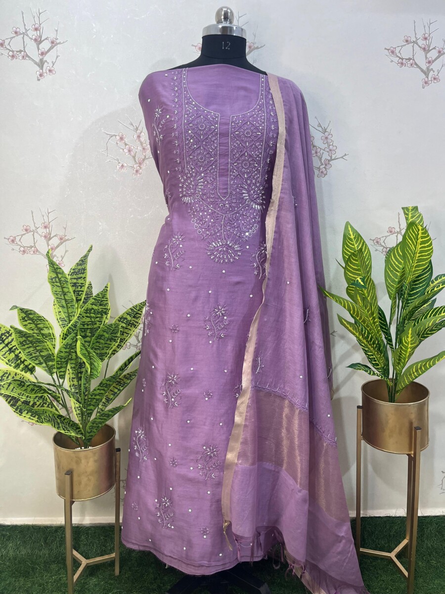 Be the first to review “pure chanderi unstitched two piece set gala buti work”