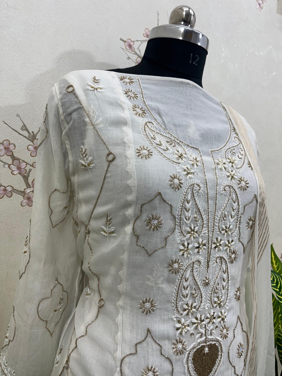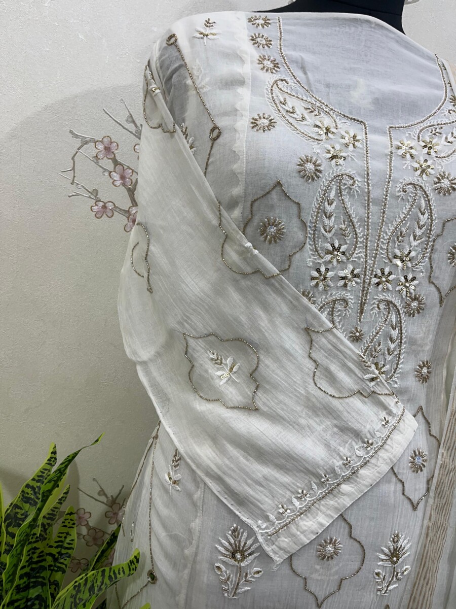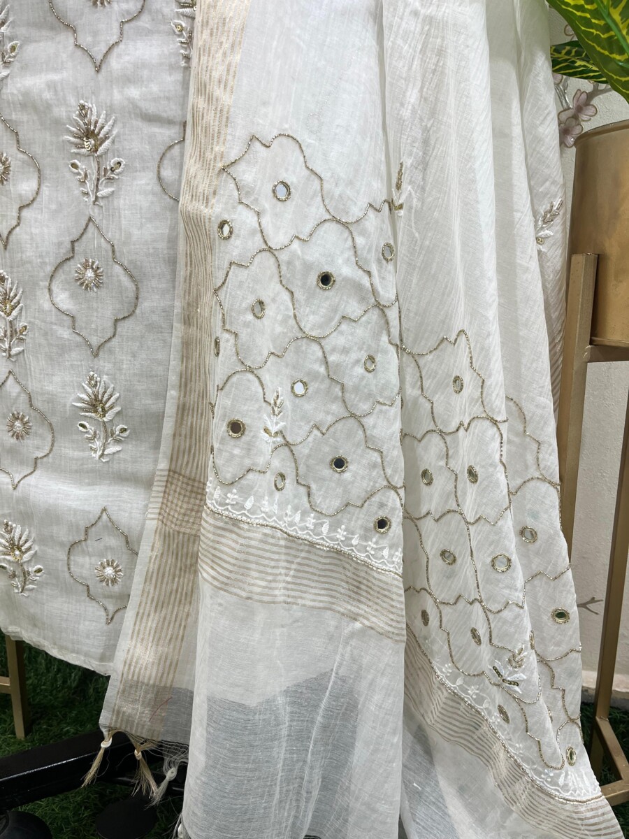Embroidery: Fine Chikankari with subtle add-on & mirror work detailing
