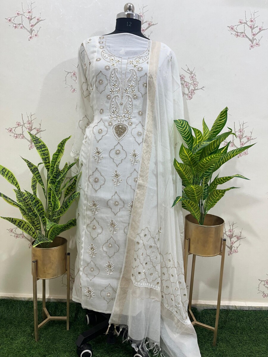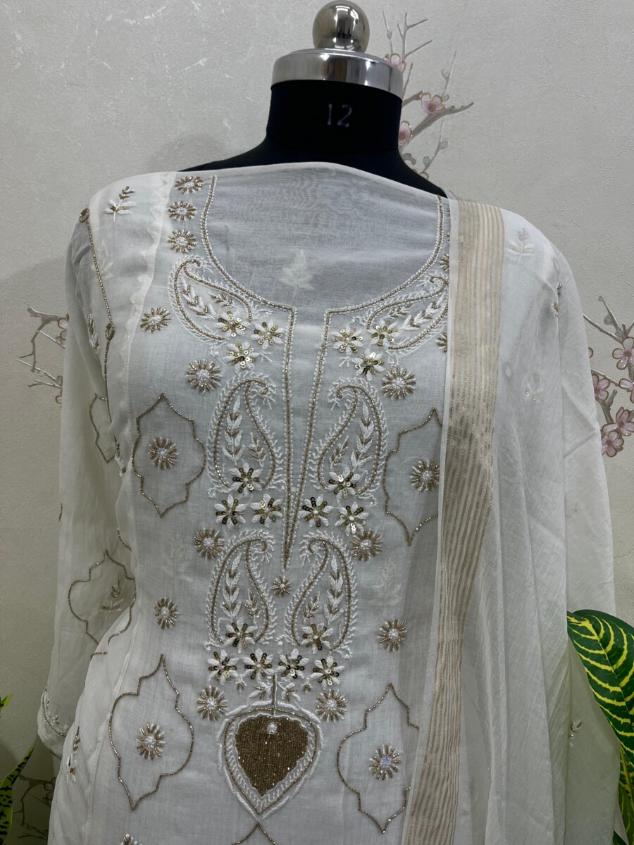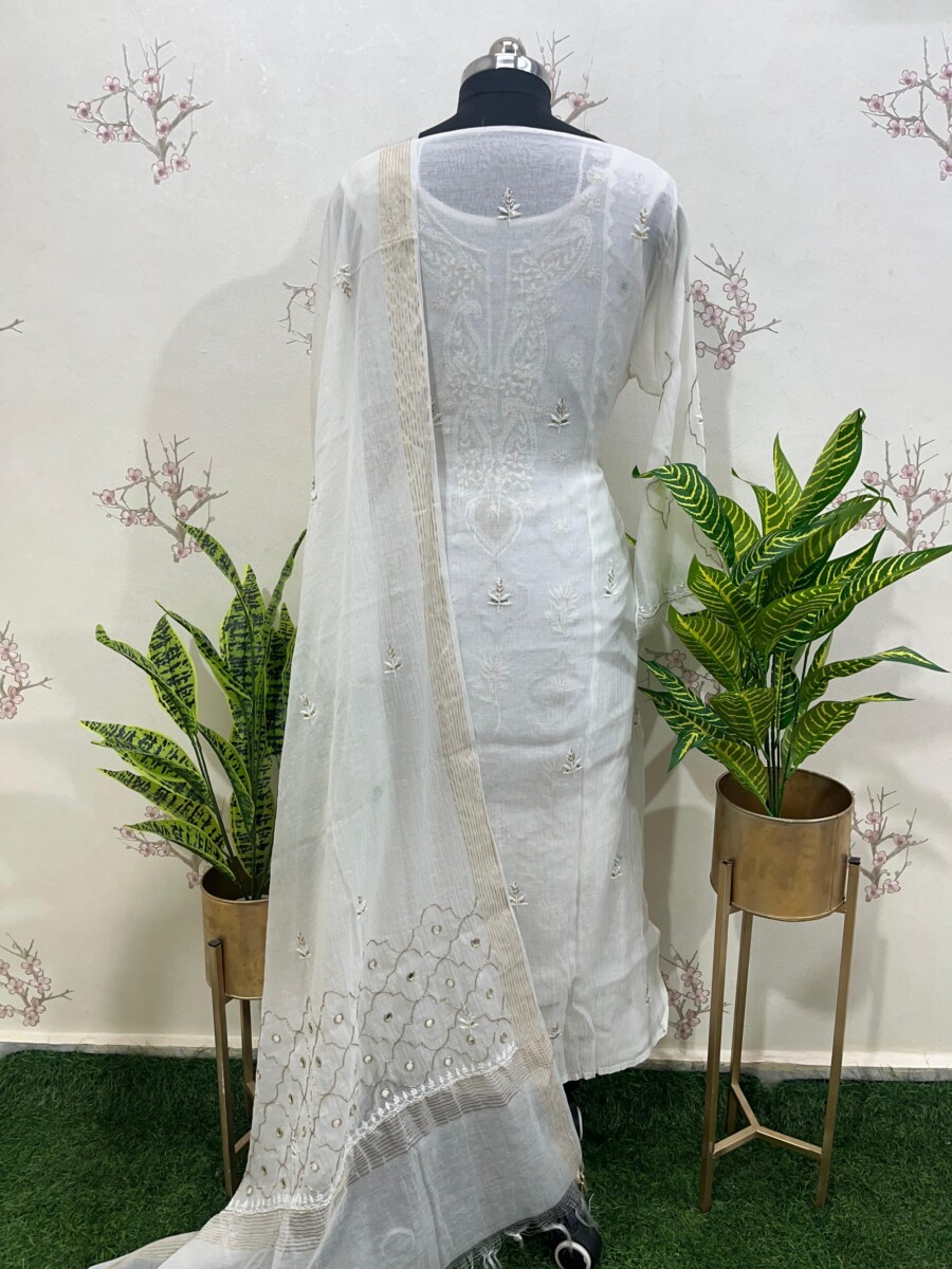 Embroidery: Fine Chikankari with subtle add-on & mirror work detailing