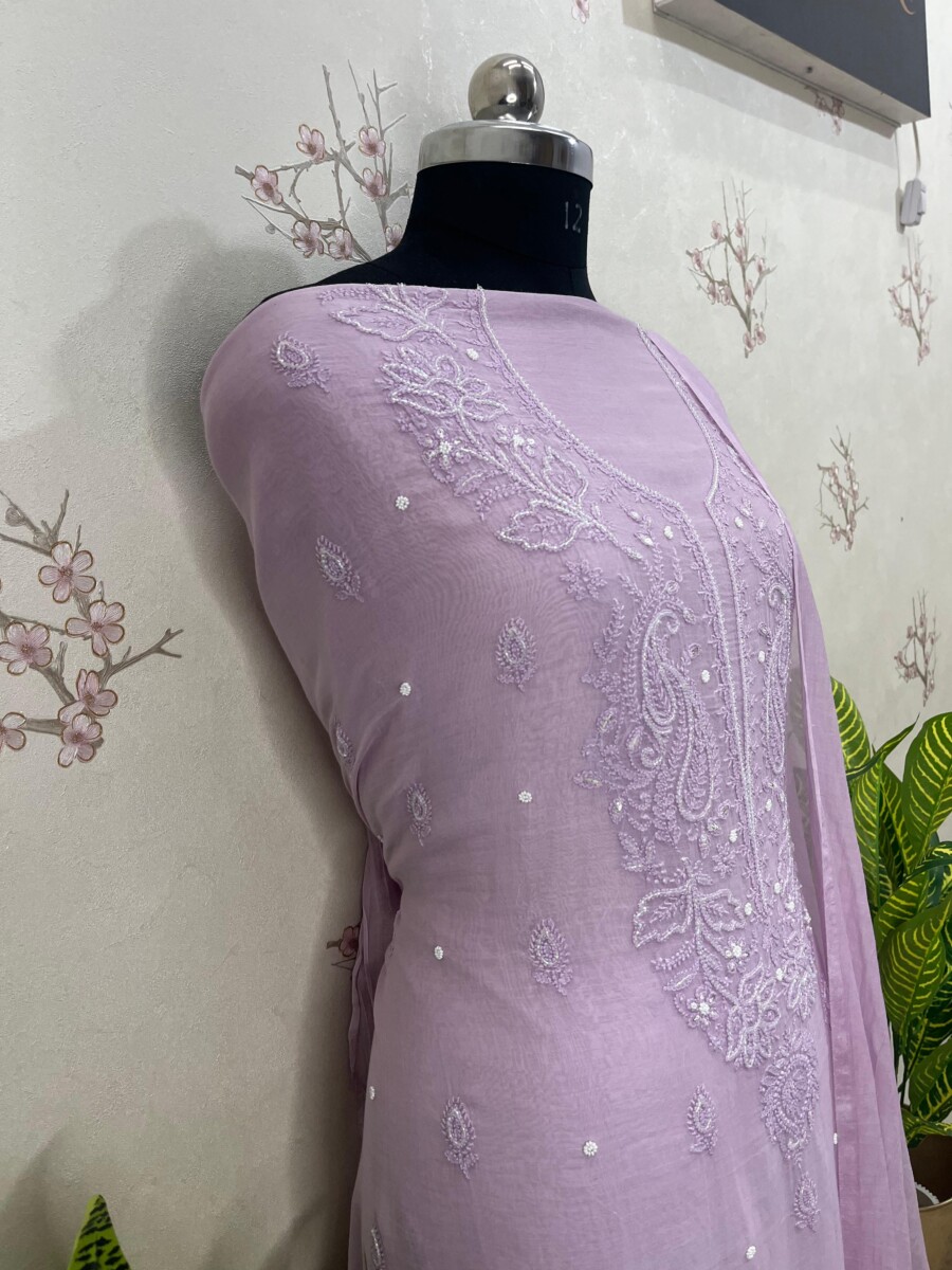 Embroidery: Fine Chikankari with subtle add-on detailing