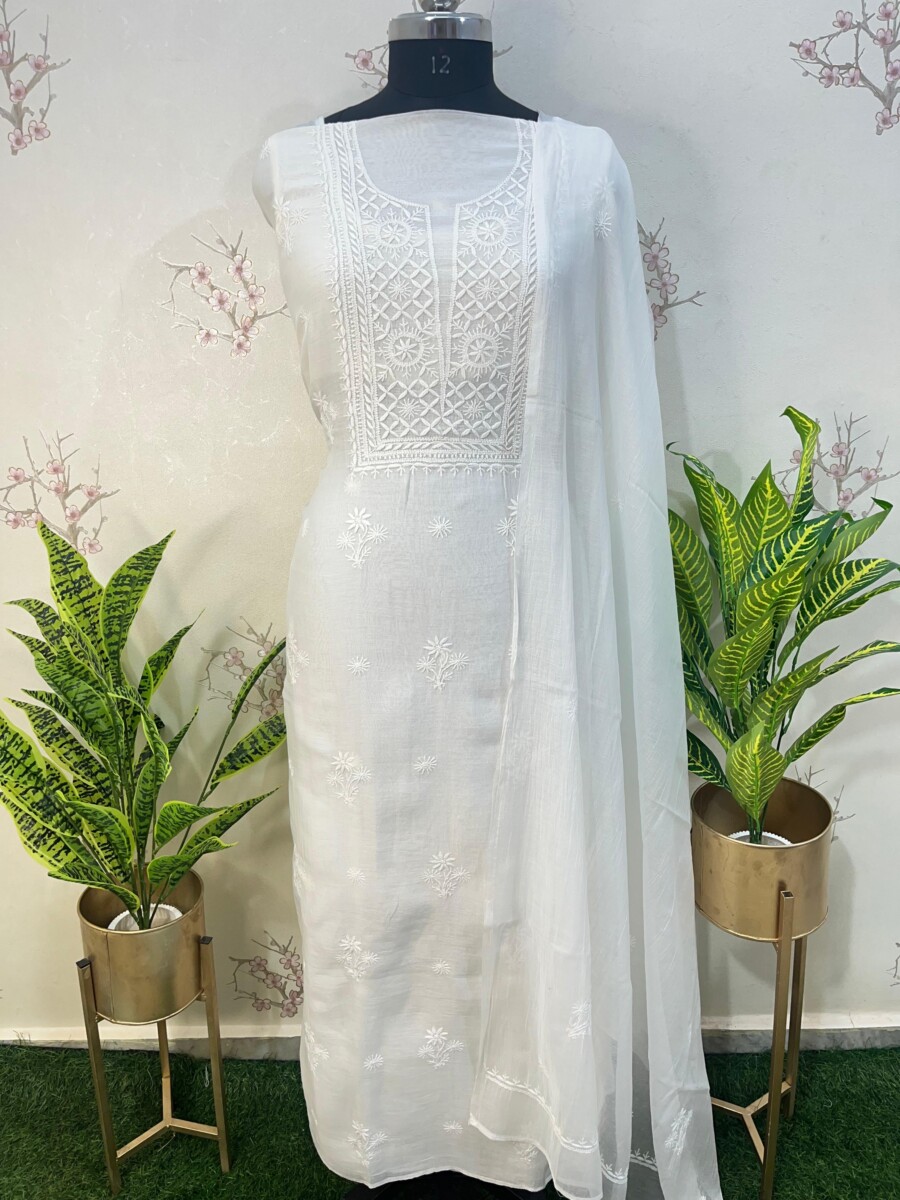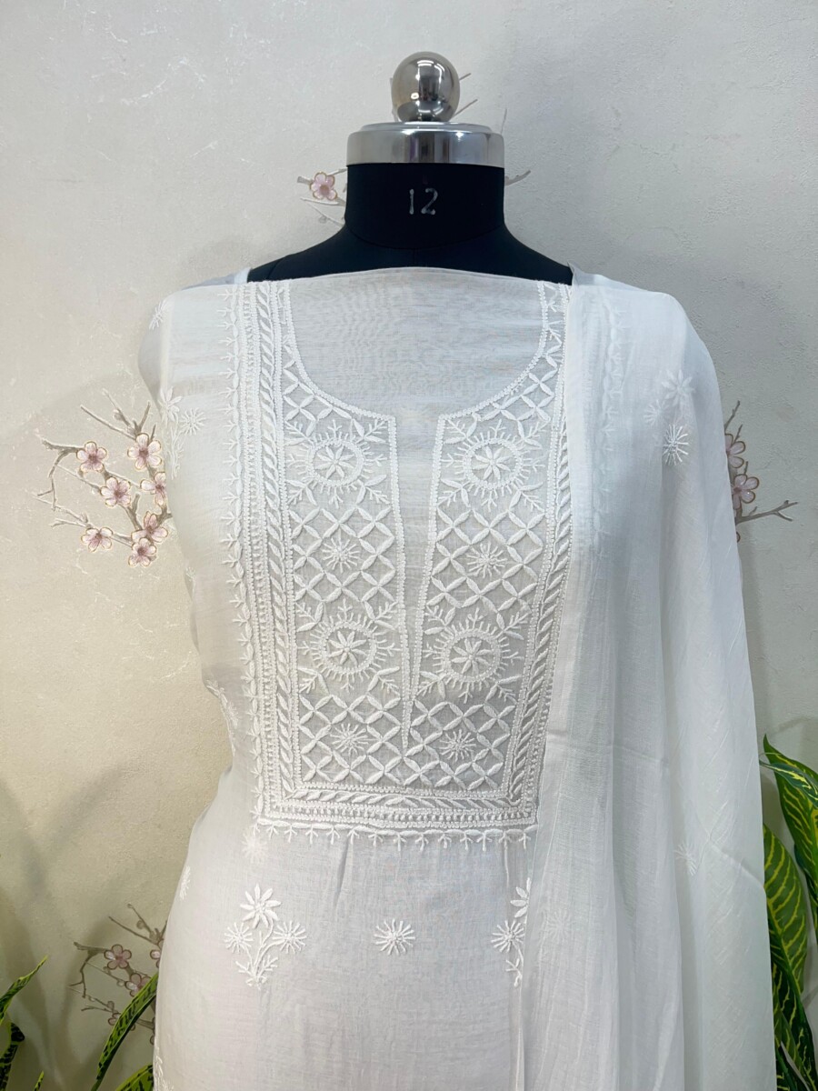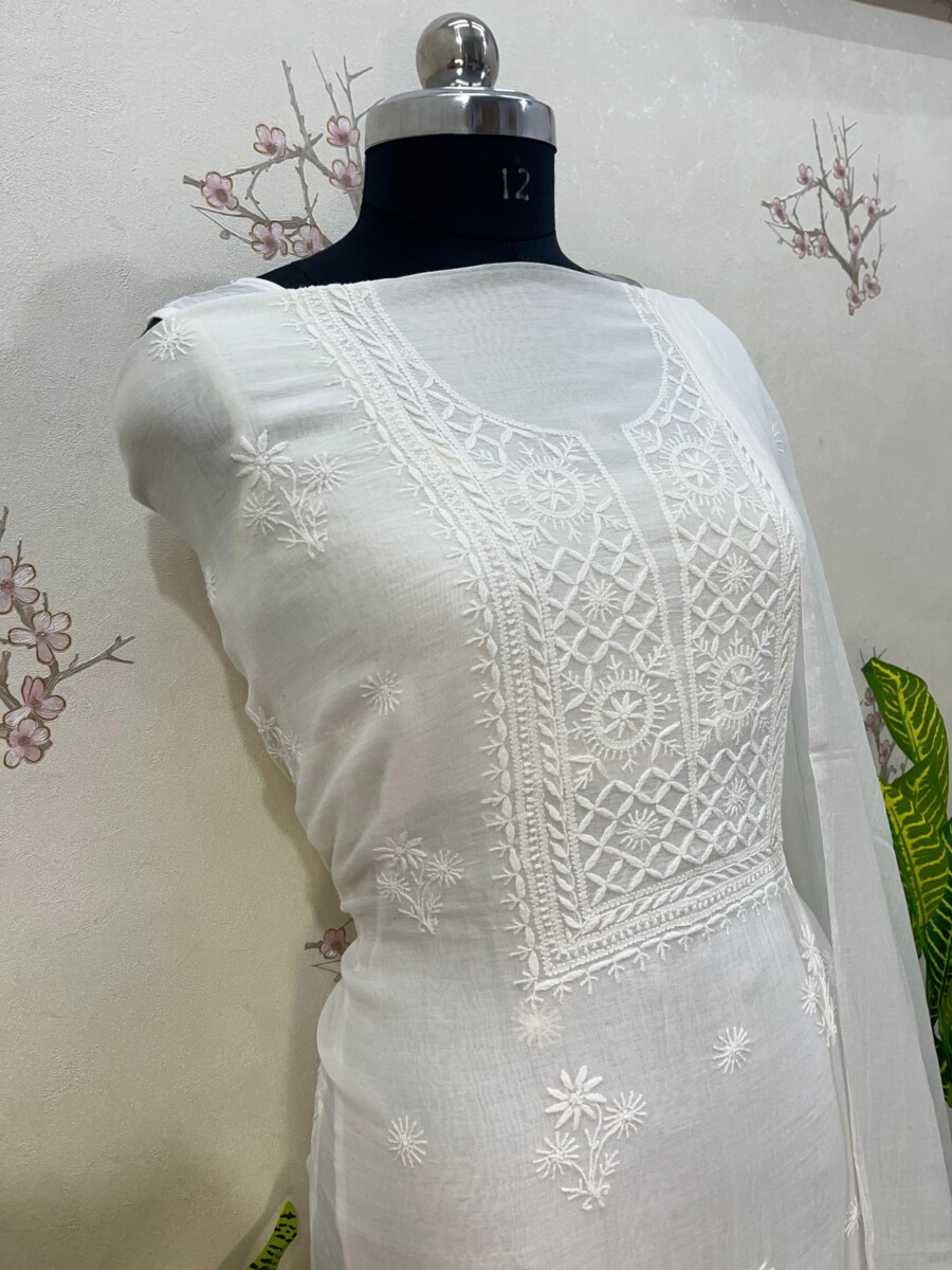 Embroidery: Fine Chikankari with jali work detailing