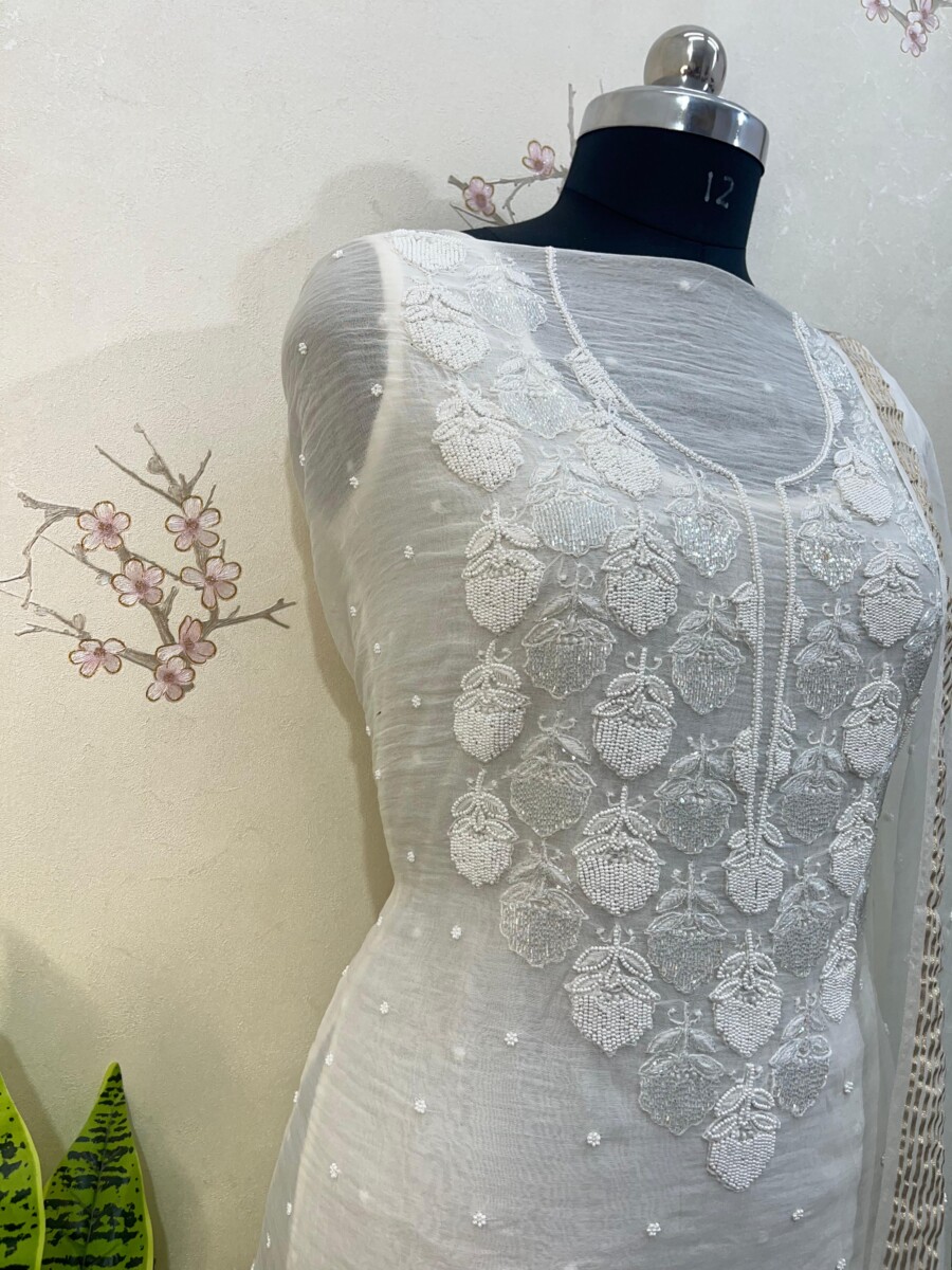 Embroidery: Fine Chikankari with subtle add-on detailing