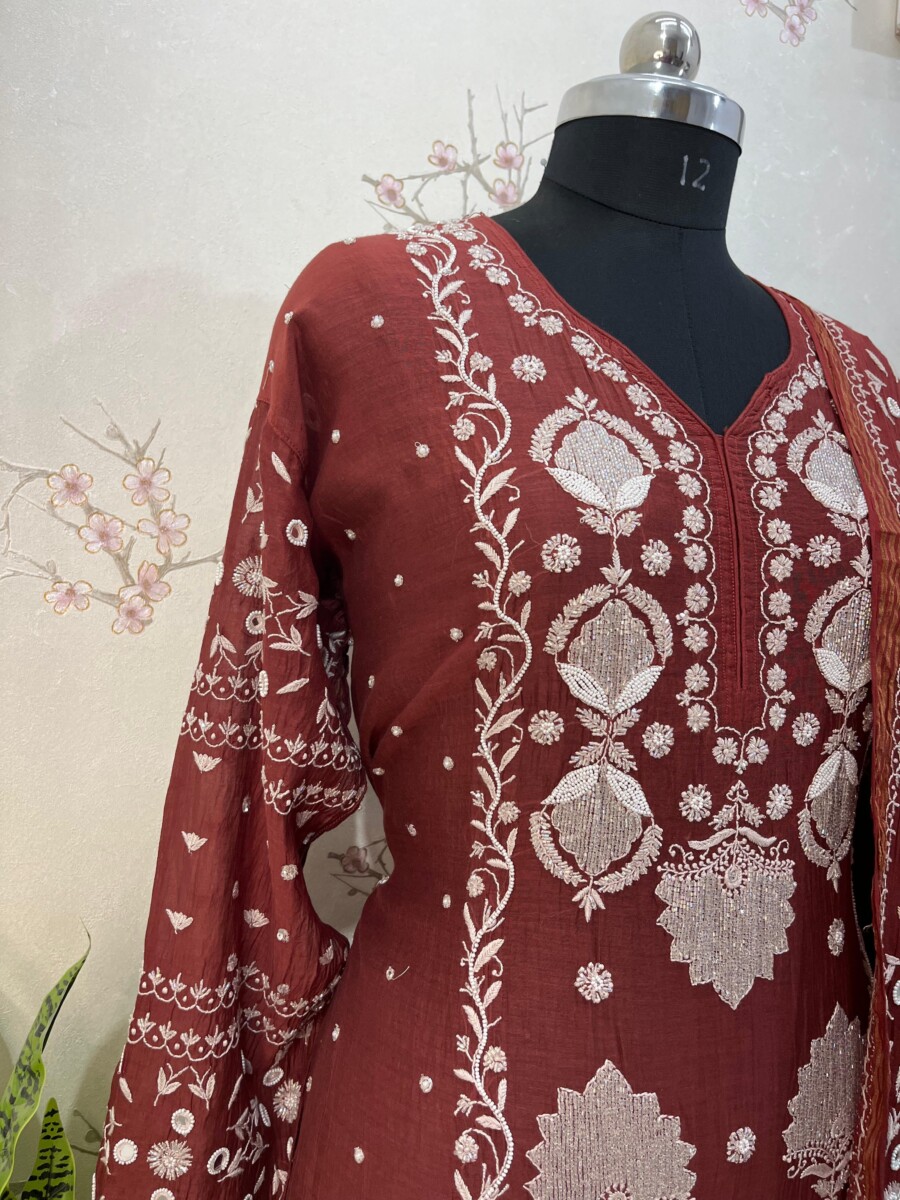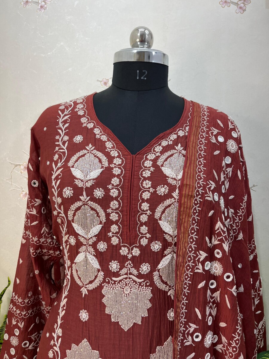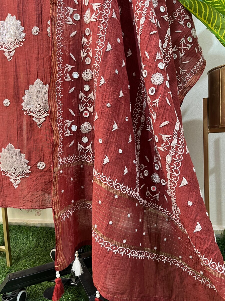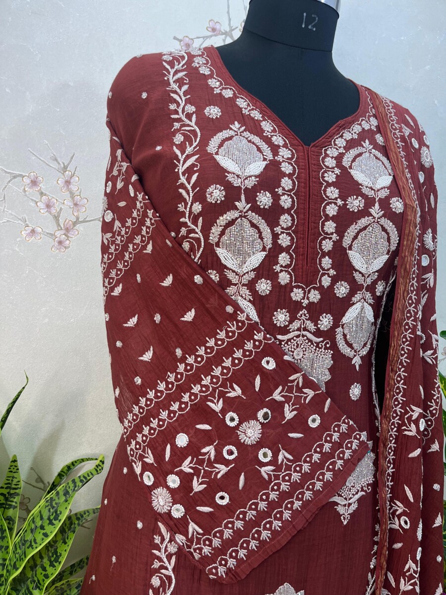 Embroidery: Fine Chikankari mirror with subtle add-on detailing