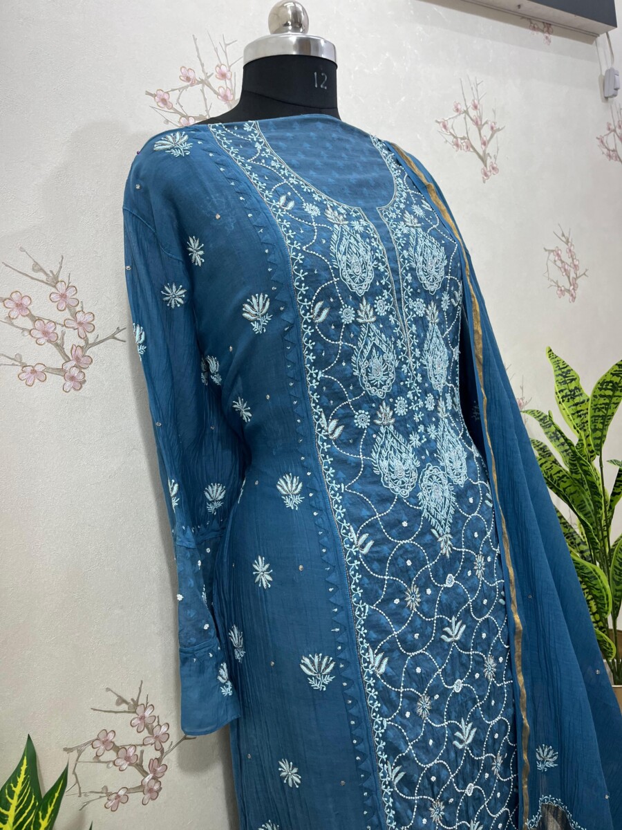 Embroidery: Fine Chikankari with subtle add-on detailing