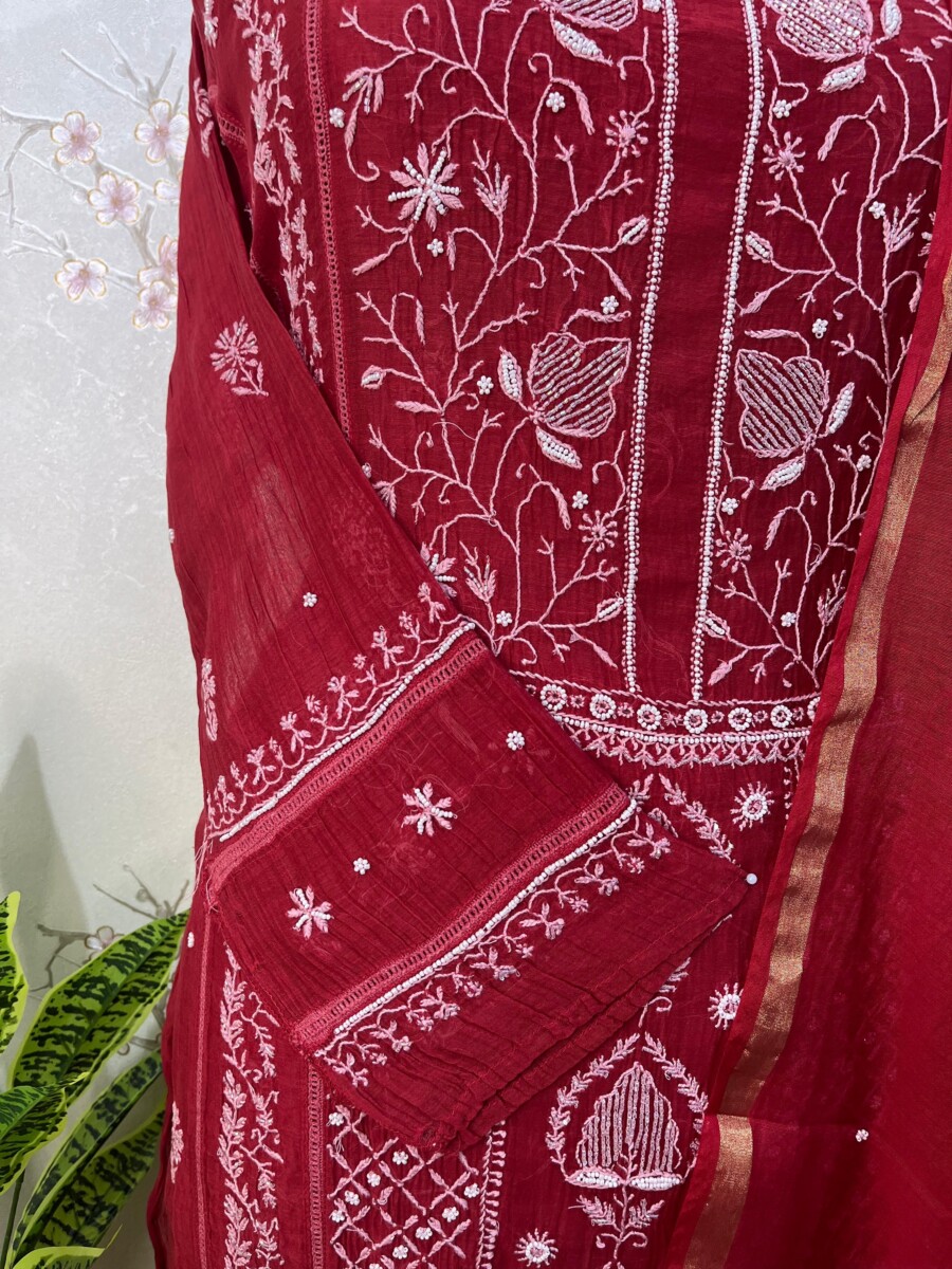 Embroidery: Fine Chikankari with subtle add-on detailing