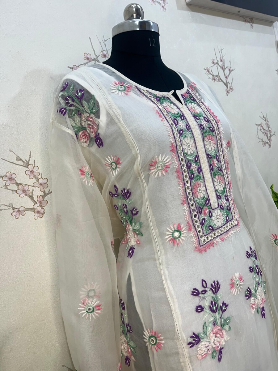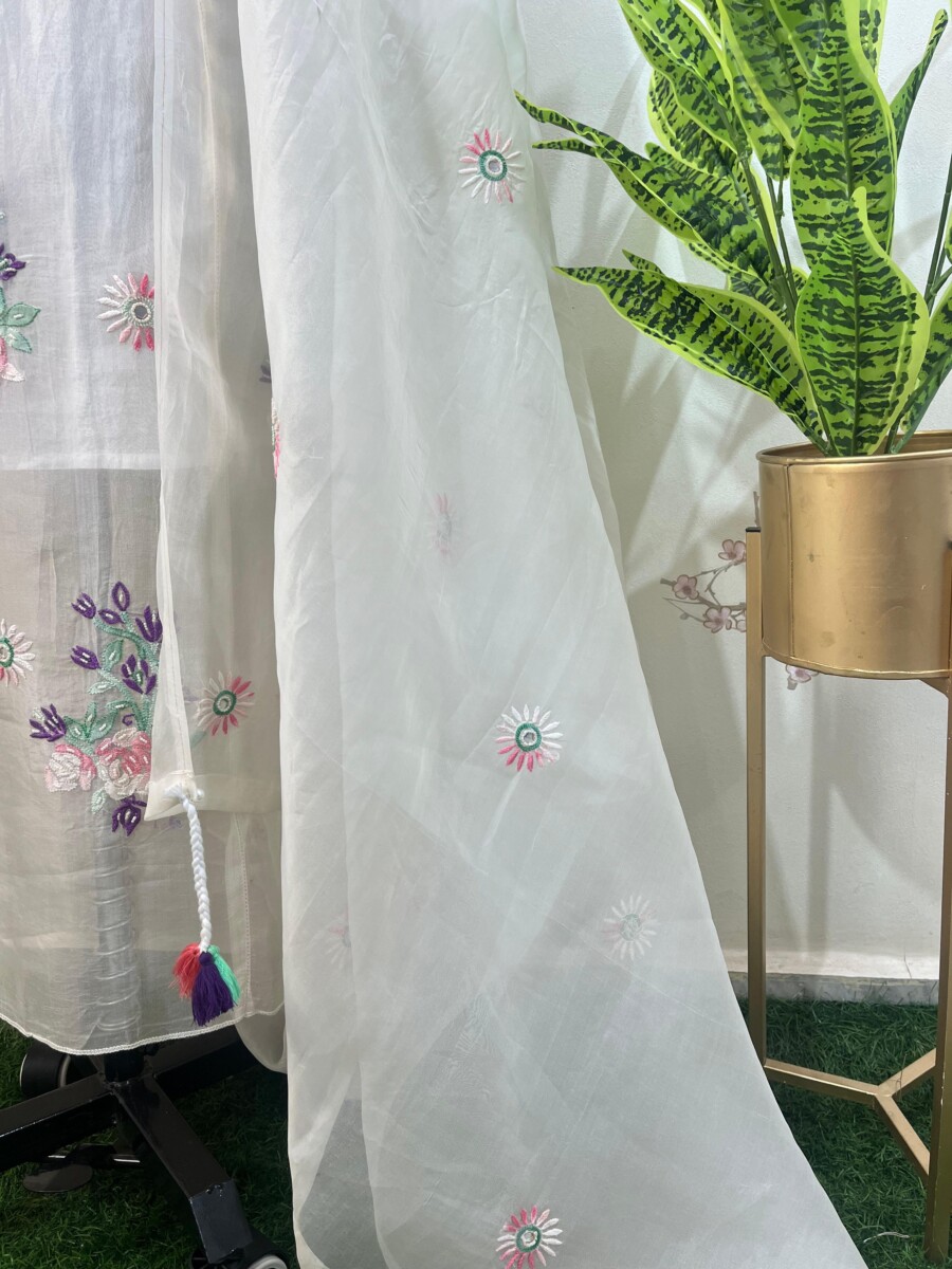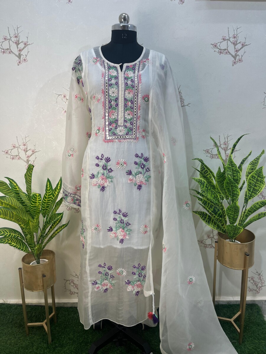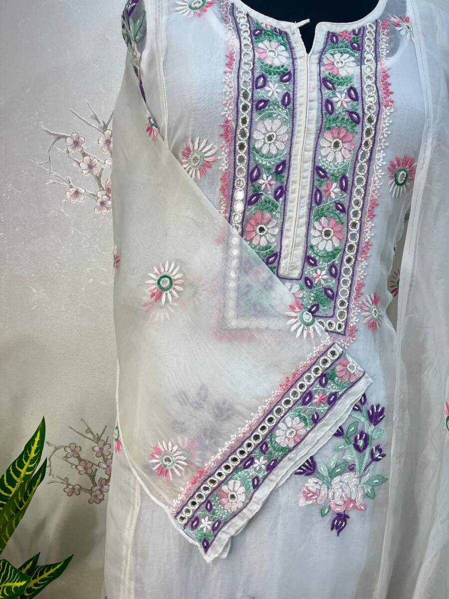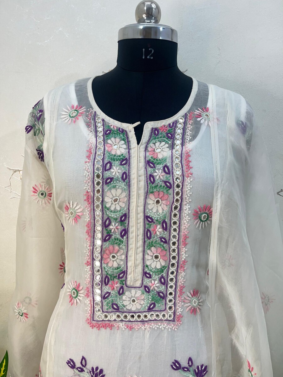 Embroidery: Fine Chikankari Zari foil with pearl work