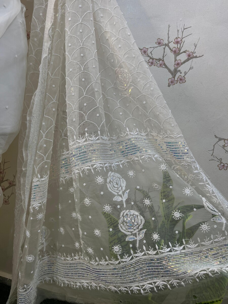 Embroidery: Fine Chikankari with subtle add-on detailing